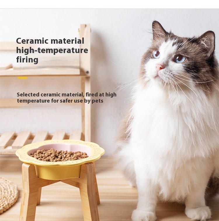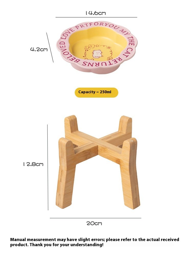 Lace cat bowl, anti-black chin cat canned food bowl, ceramic dog food bowl, cat anti-knockover water bowl, high-legged wooden stand